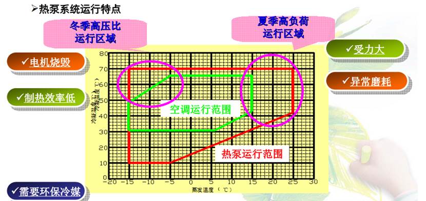 图六:热泵系统运行特点(摘自上海日立电器有限公司资料)